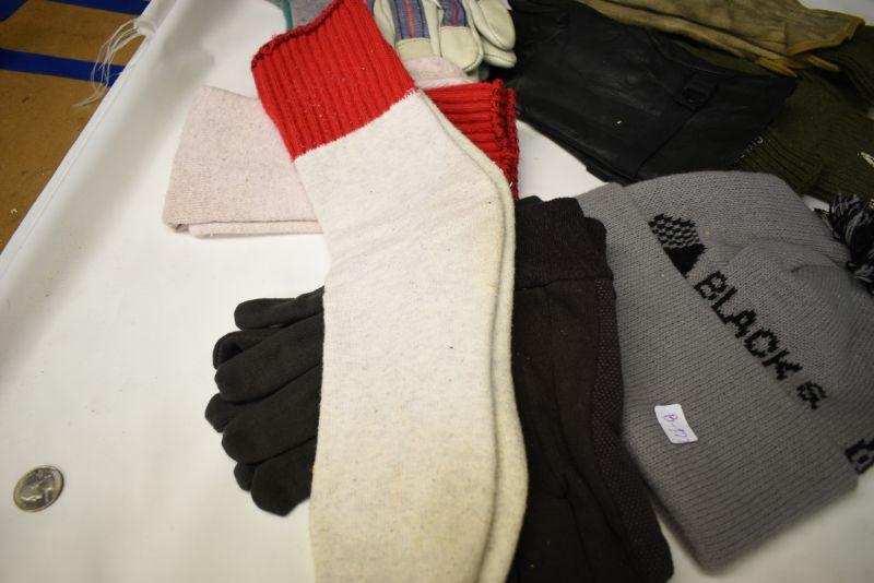 Winter gloves, hat, and socks. Socks are used. Bring bag to remove. Located in basement that has narrow, steep, cement steps, and a sharp turn to right at bottom.