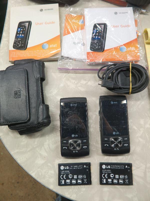 Two LG cell phones with batteries and manuals. Untested. Located in basement that has narrow, steep, cement steps, and a sharp turn to right at bottom.
