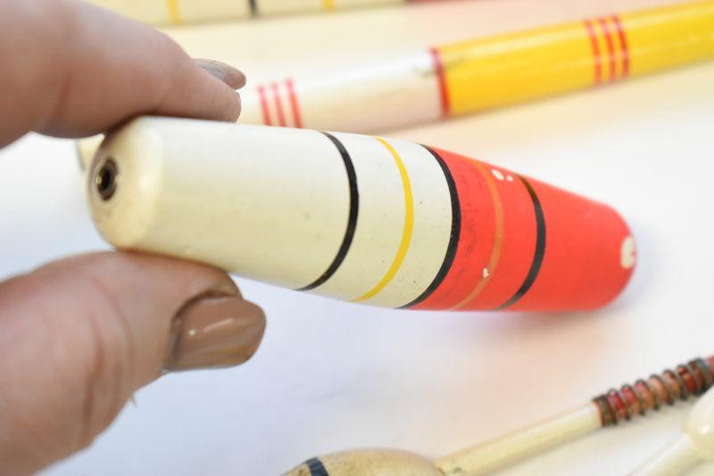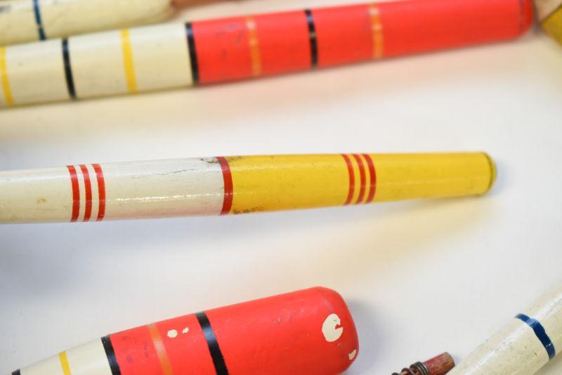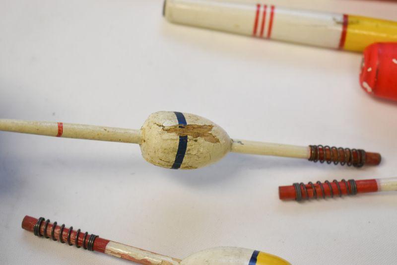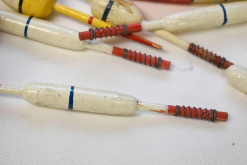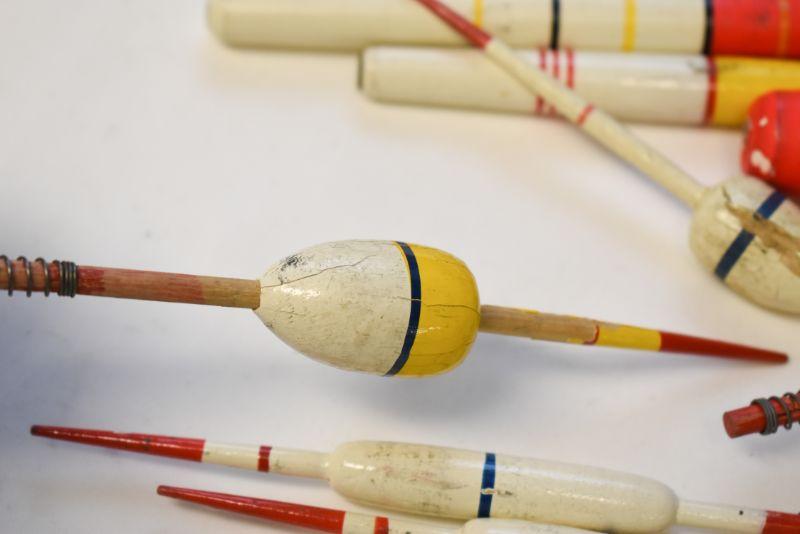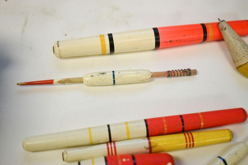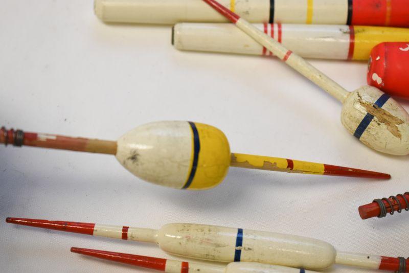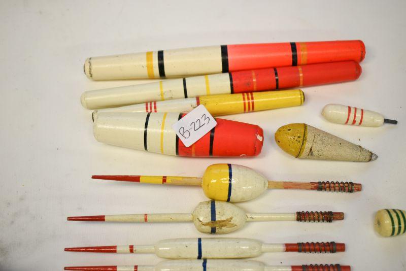 Used, vintage floats. Assortment of sizes. Located in basement that has narrow, steep, cement steps, and a sharp turn to right at bottom.