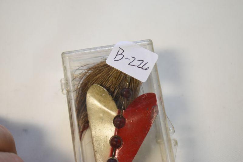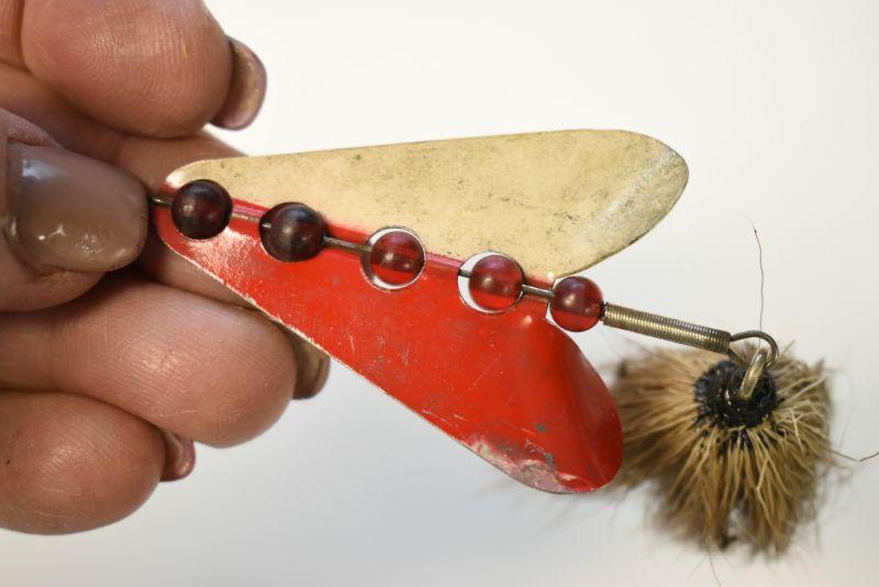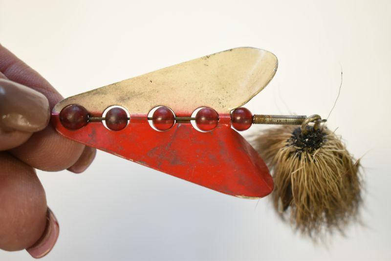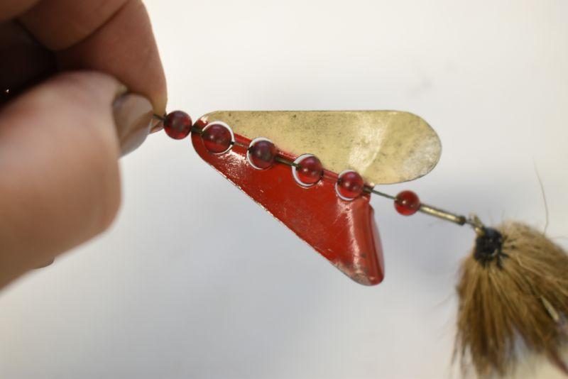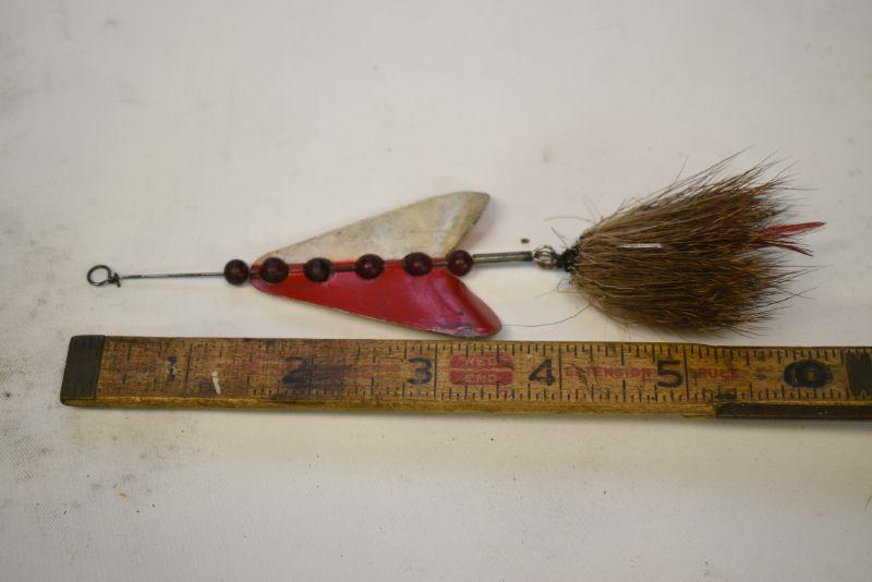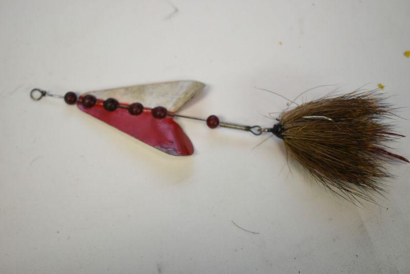 Heart shaped fishing lure. Located in basement that has narrow, steep, cement steps, and a sharp turn to right at bottom.