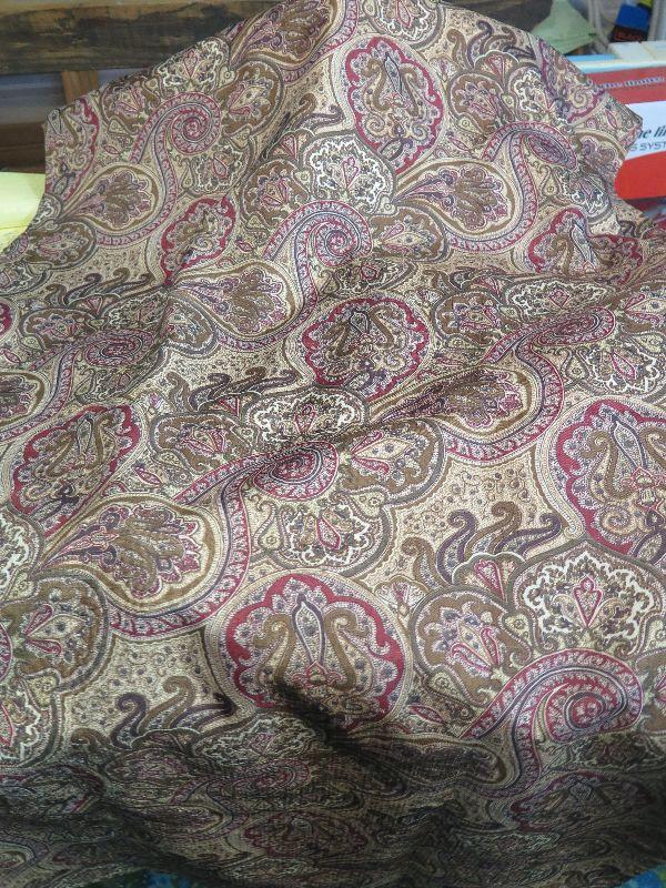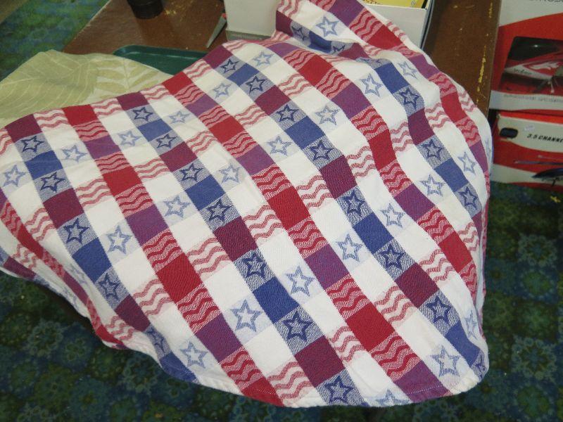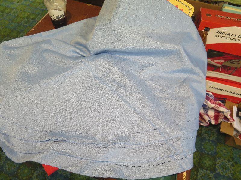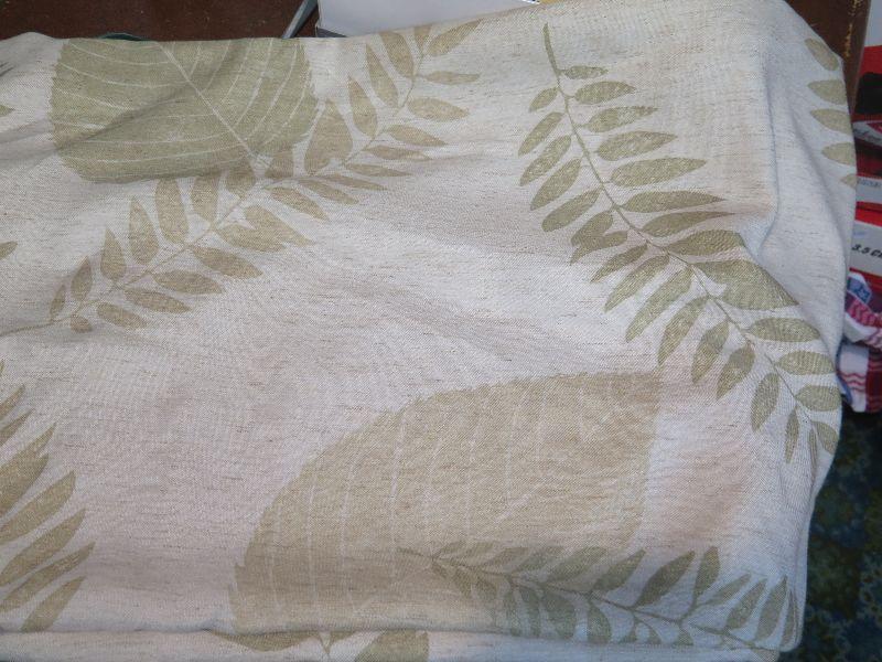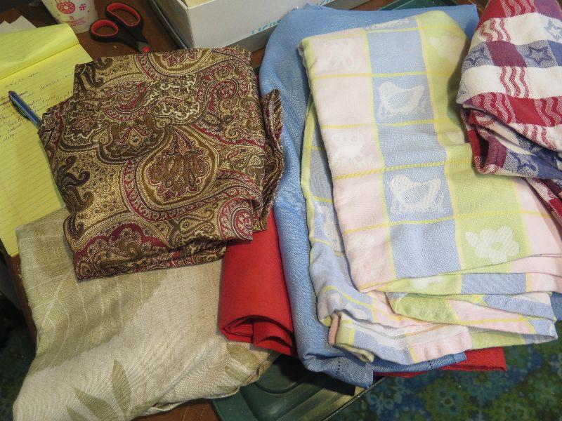 Nice assortment of table cloths, paisley is 115x60, the red one is also square. The others are round, largest is 60 inches.