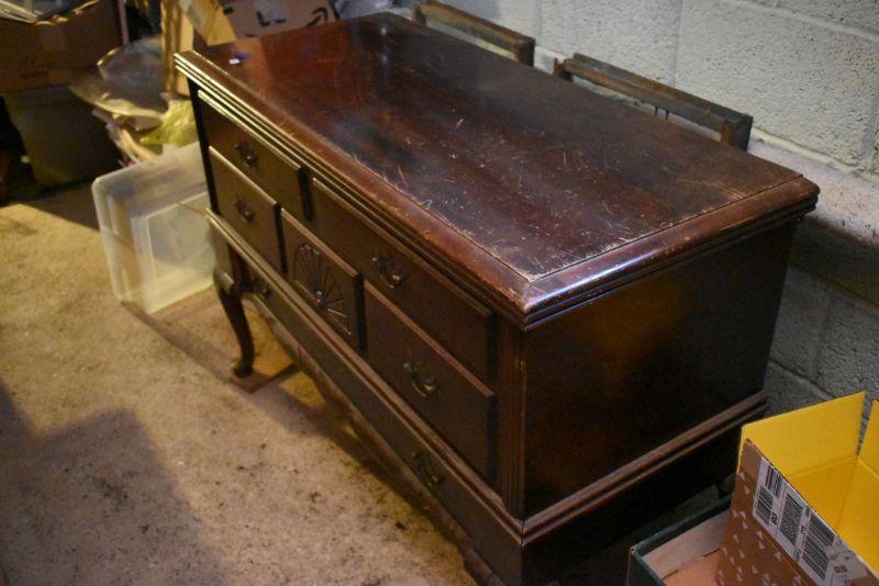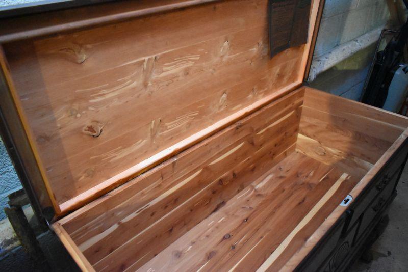 West Branch cedar chest. Like new on the inside. Very scratched on outside finish. A great, solid chest. Bring help to move. Located in basement that has narrow, steep, cement steps, and a sharp turn to right at bottom.