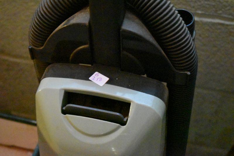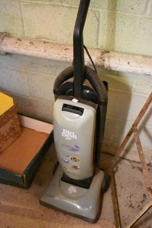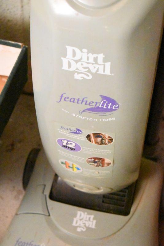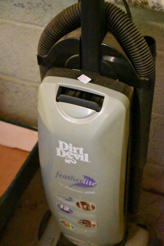 Dirt Devil vacuum cleaner. Has attachments. Untested. Located in basement that has narrow, steep, cement steps, and a sharp turn to right at bottom.