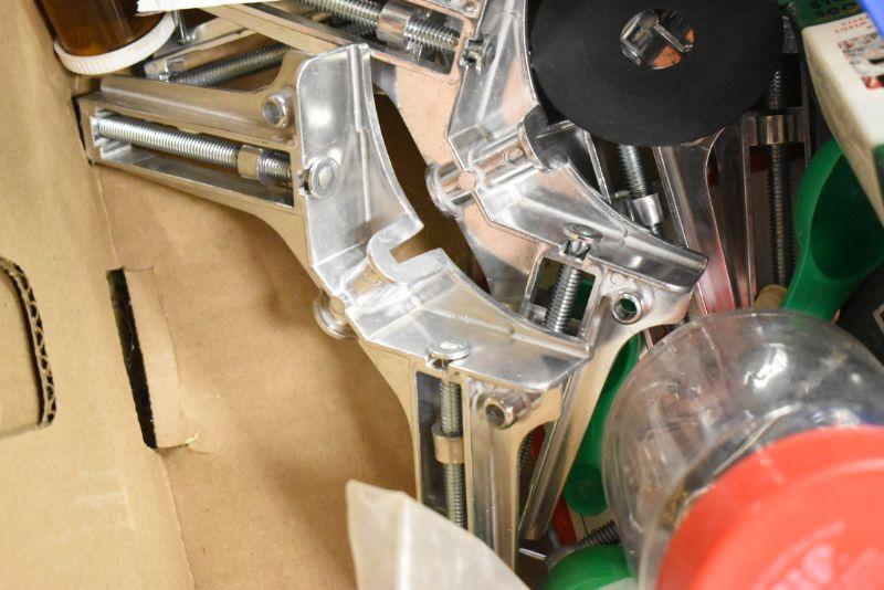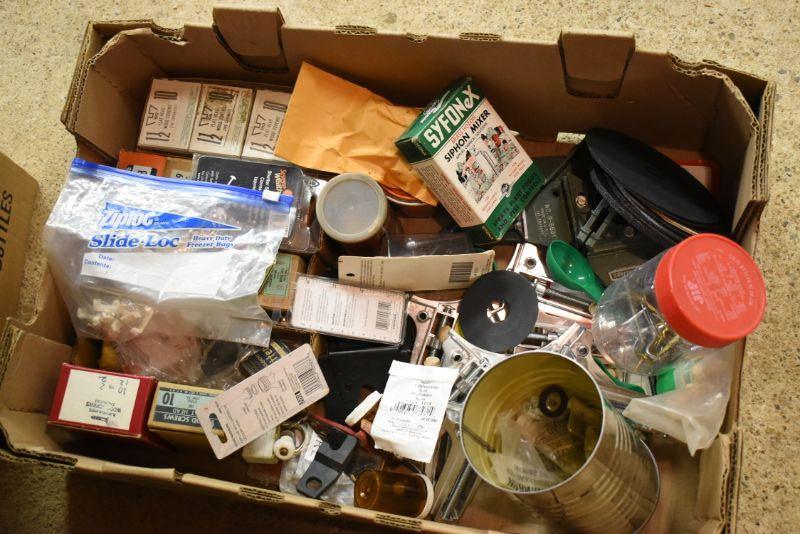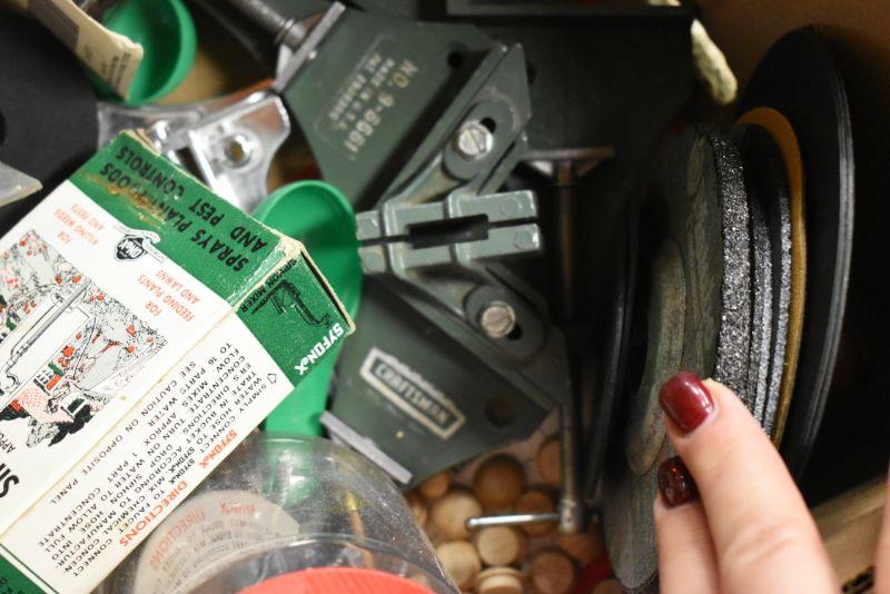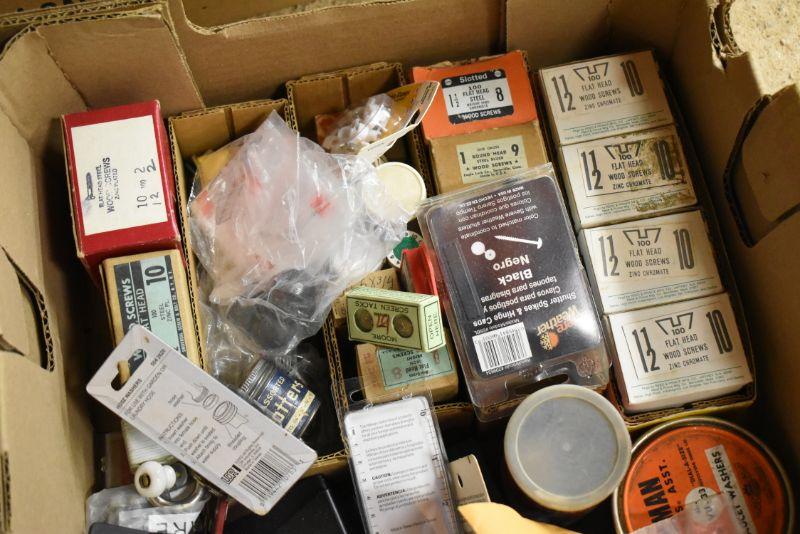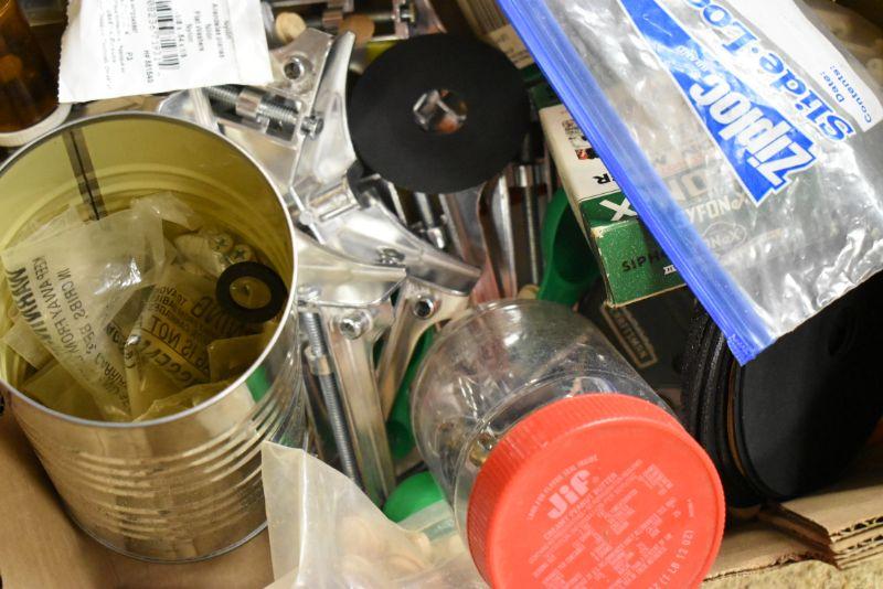 Screws, nails, fasteners and more. Located in basement, with steep and narrow cement steps going down, with a sharp turn at bottom.