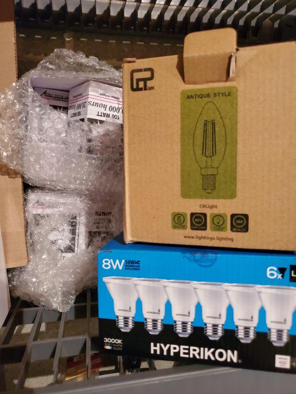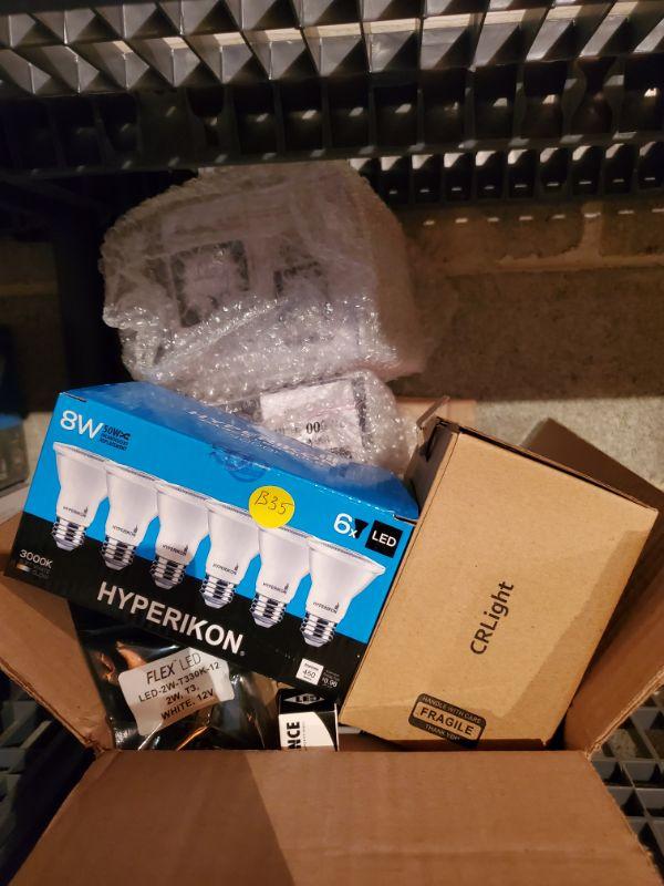 Everything pictured goes to the highest bidder. Several LED lights, and light bulbs. Most unopened.