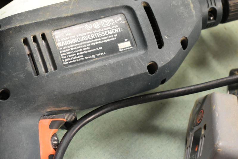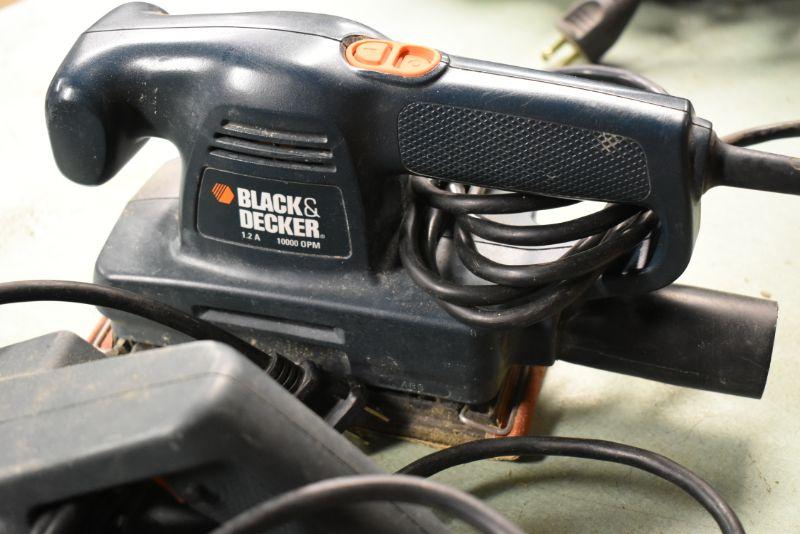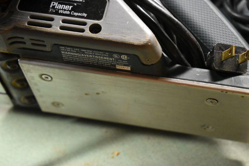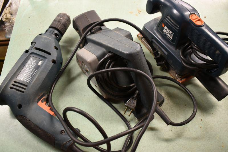 Black and Decker sander, drill and planer. Untested. Bring help to move. Located in basement that has narrow, steep, cement steps, and a sharp turn to right at bottom.
