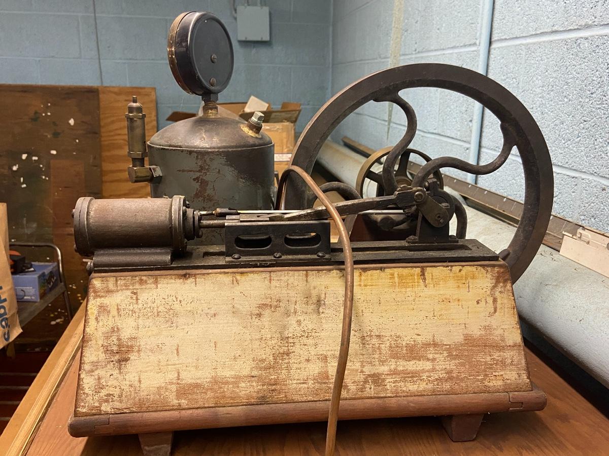 This is as-seen in pictures. Antique small steam engine. No makers marks. Turns smoothly! Please see all the pictures for the treasures in each lot. Pick-up for this auction will be on November 13th from 9am to 2pm. The two auctions will be running at the same time, so please make your max bids early as items will be ending at the same time.