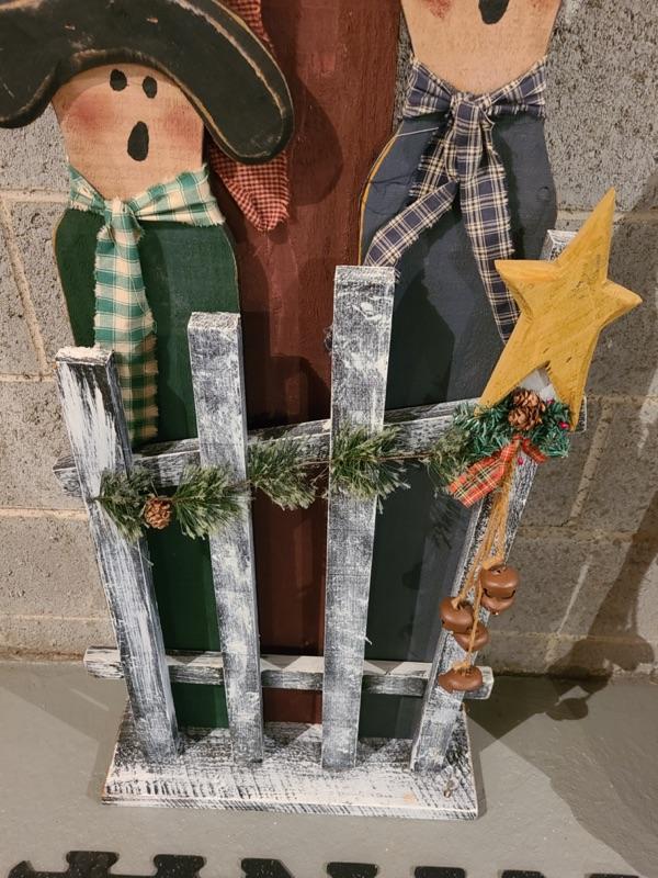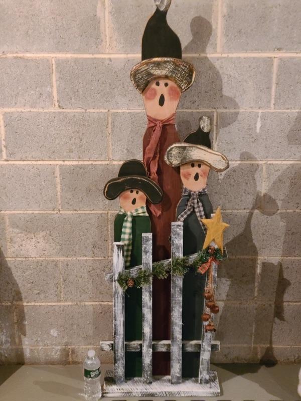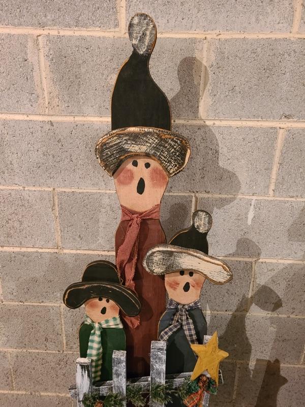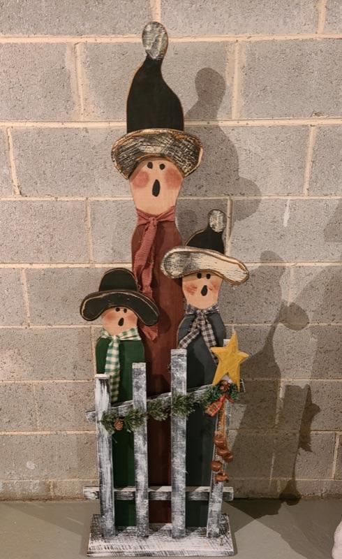 These are custom built, made of wood, carolers. This stands just at 5 feet tall! Great for indoor or out! Please see pics for sizing and condition.