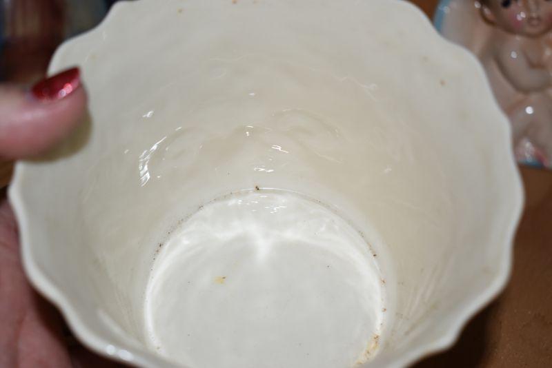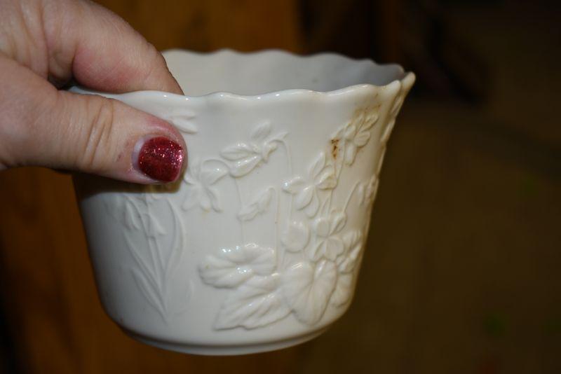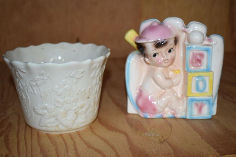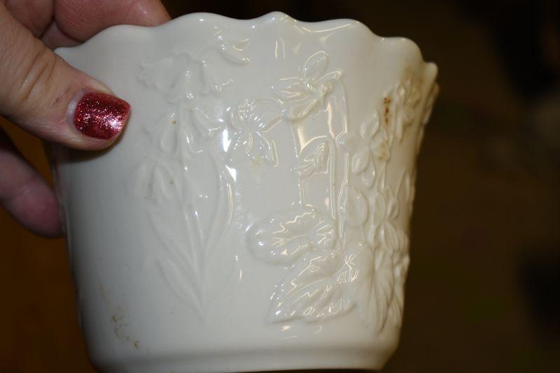 Lenox flower pot with raised flowers and scalloped rim, and a vintage baby flower pot.