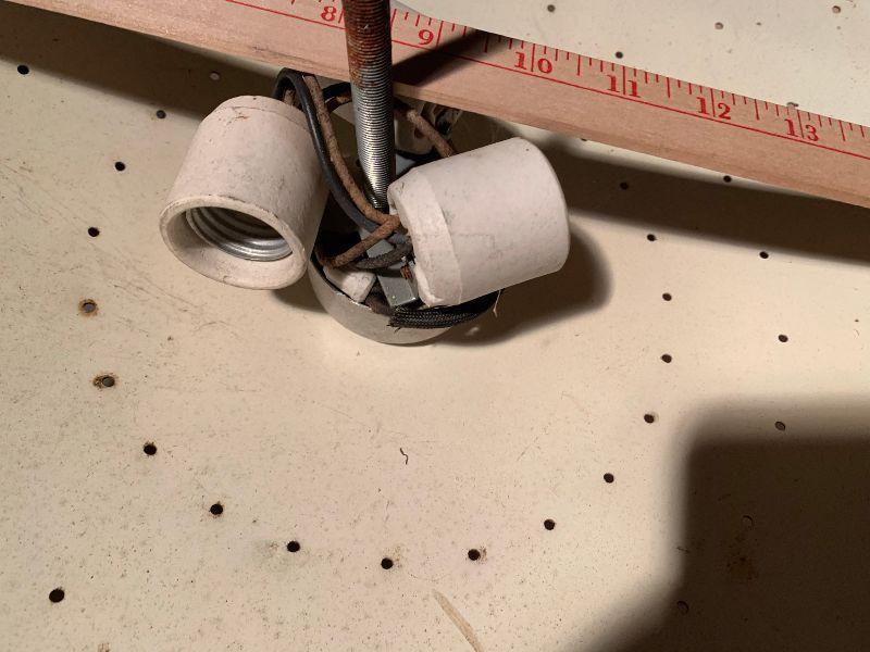 Mid-Century hanging lamp as is shade (a little bent and some paint on the base) approximate 18" diameter shade