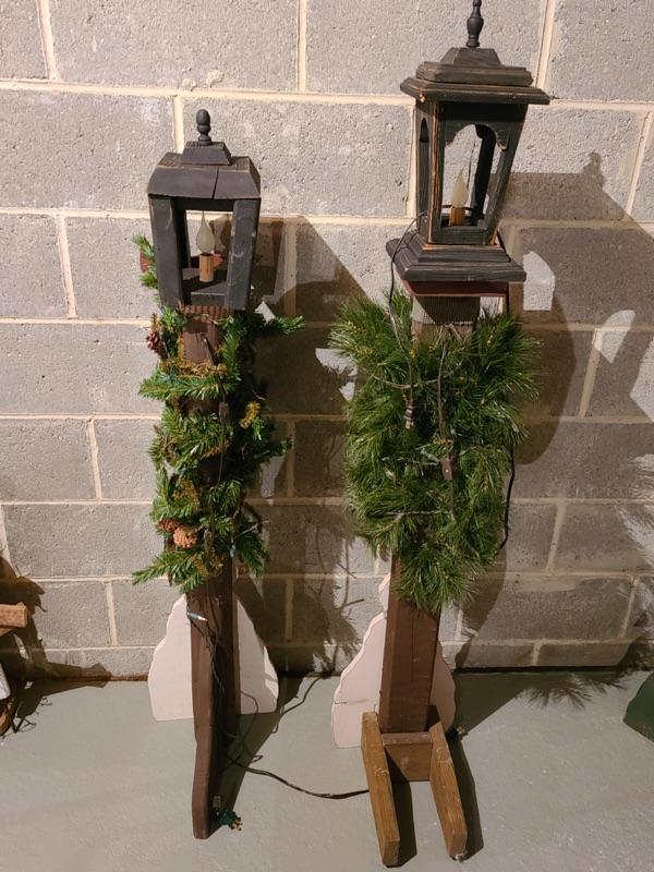 This is a nice set of snowmen lantern holiday displays. These are untested and do show a little wear. The tallest stands around 4 1/2 feet tall. Please see pics for condition and the sizing.