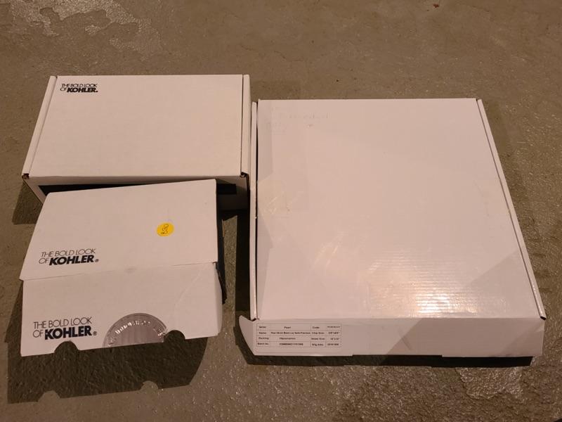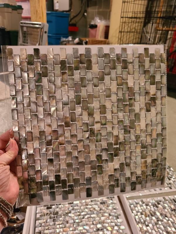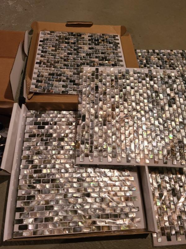 Bathroom decor, toilet tissue holder, and tiles for backsplash. 5 sheets of tiles, and pole for shower head. Shower head not included in the box. Just parts. Please see pics for condition