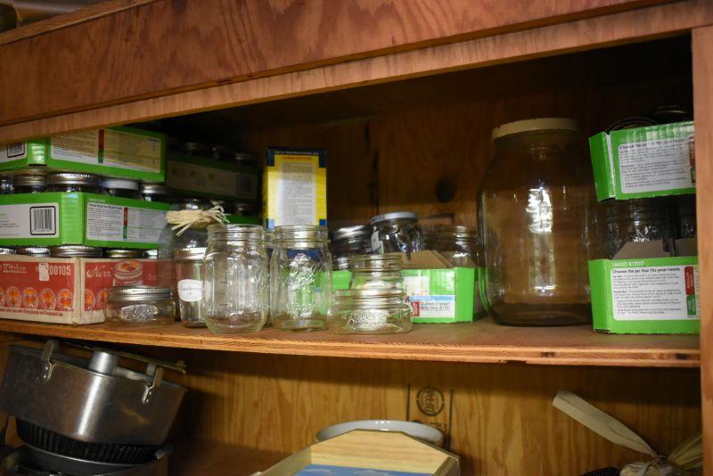 Several different sizes canning jars and lids. Bring help to move. Located in basement that has narrow, steep, cement steps, and a sharp turn to right at bottom.