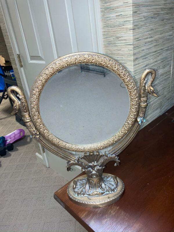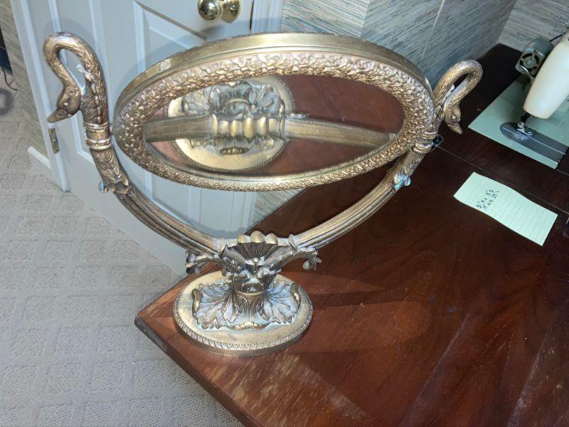 Lot B9: Vintage Victorian Style Bronze Brass Swan Dresser Mirror