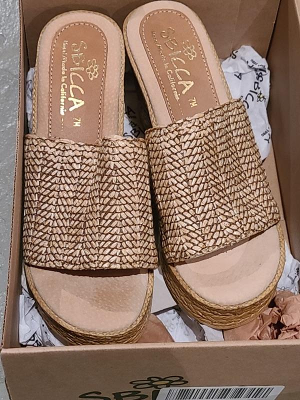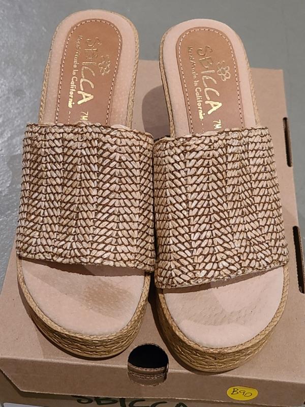 These gorgeous shoes might have been worn once! SBICCA womens size 7 Natural Wedge shoes. Please see pics for condition and sizing.