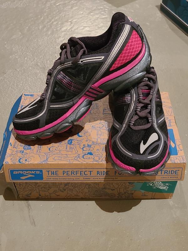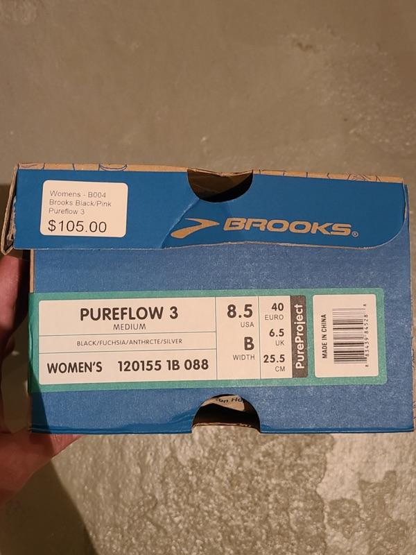 These look like they are still new. Brooks Womens size 8.5 Pureflow athletic shoes retailed over $100! Please see pics for condition and sizing.