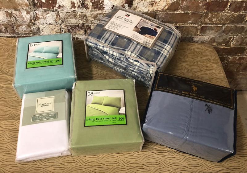 Here is a lot of five Bed Sheets..New in packages..Assorted sizes..X-Large to Twin...