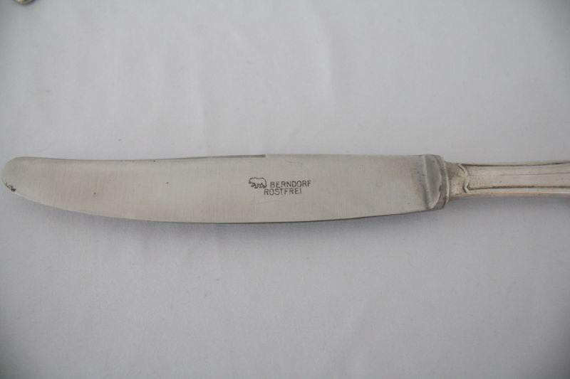 Berndorf Rostfrei Silver Plated Flatware Set - 30 piece silver plated flatware set made by Berndorf Rostfrei made between 1938 and 1945. Made by Berndorf Metal Factory and marked with the traditional bear stamp. Includes 6 knives, 6 forks, 6 spoons, 6 tea spoons, and 6 serving pieces. In good condition with slight signs of tarnish.