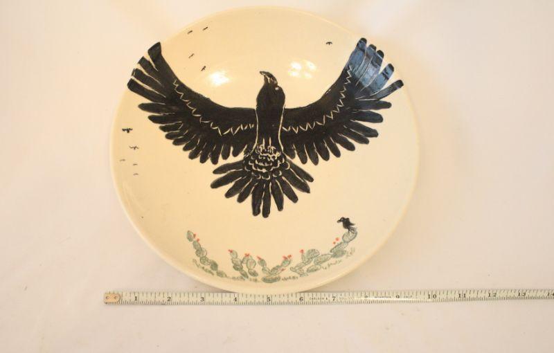 Lot #66: Blazek Clay Arts Flying Raven Stoneware Decorative Plate Made in ATX
