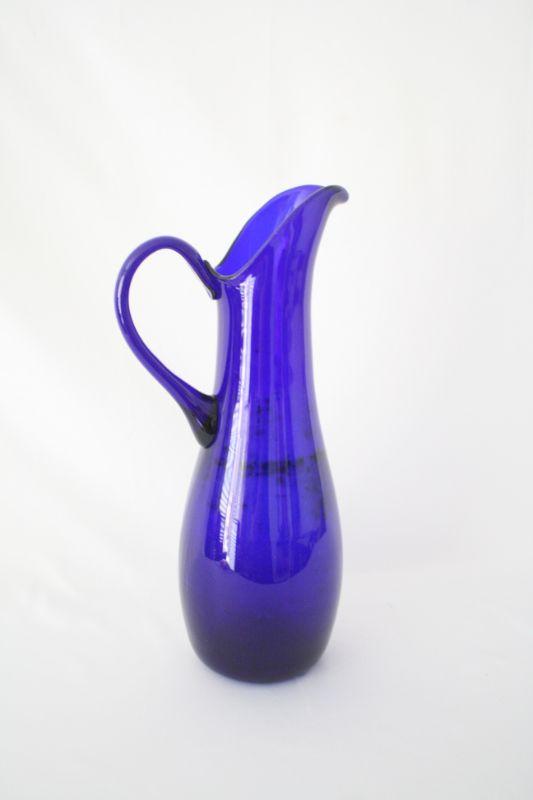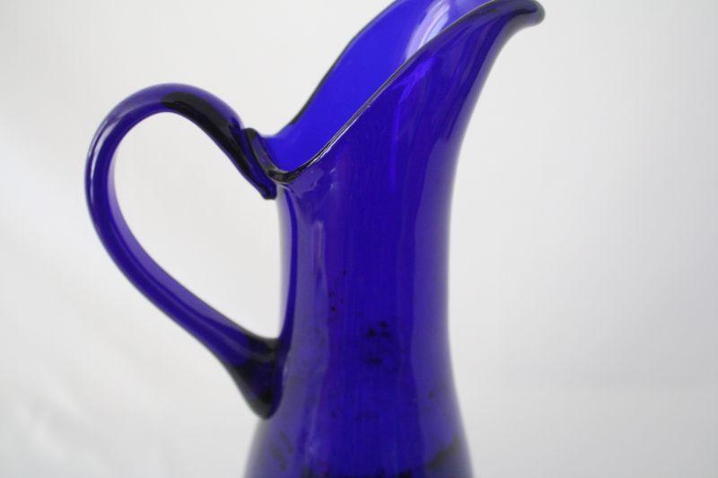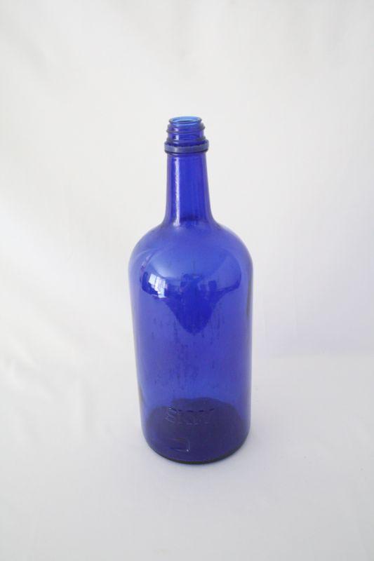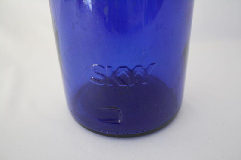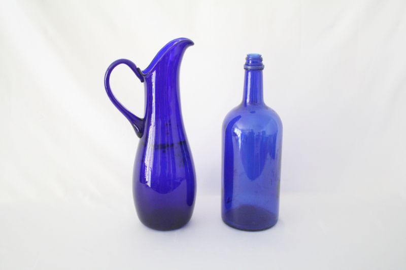 Blue Glass _ A deep blue decorative glass pitcher and large vintage SKYY Vodka bottle. Can be used for a variety of projects or decoration.