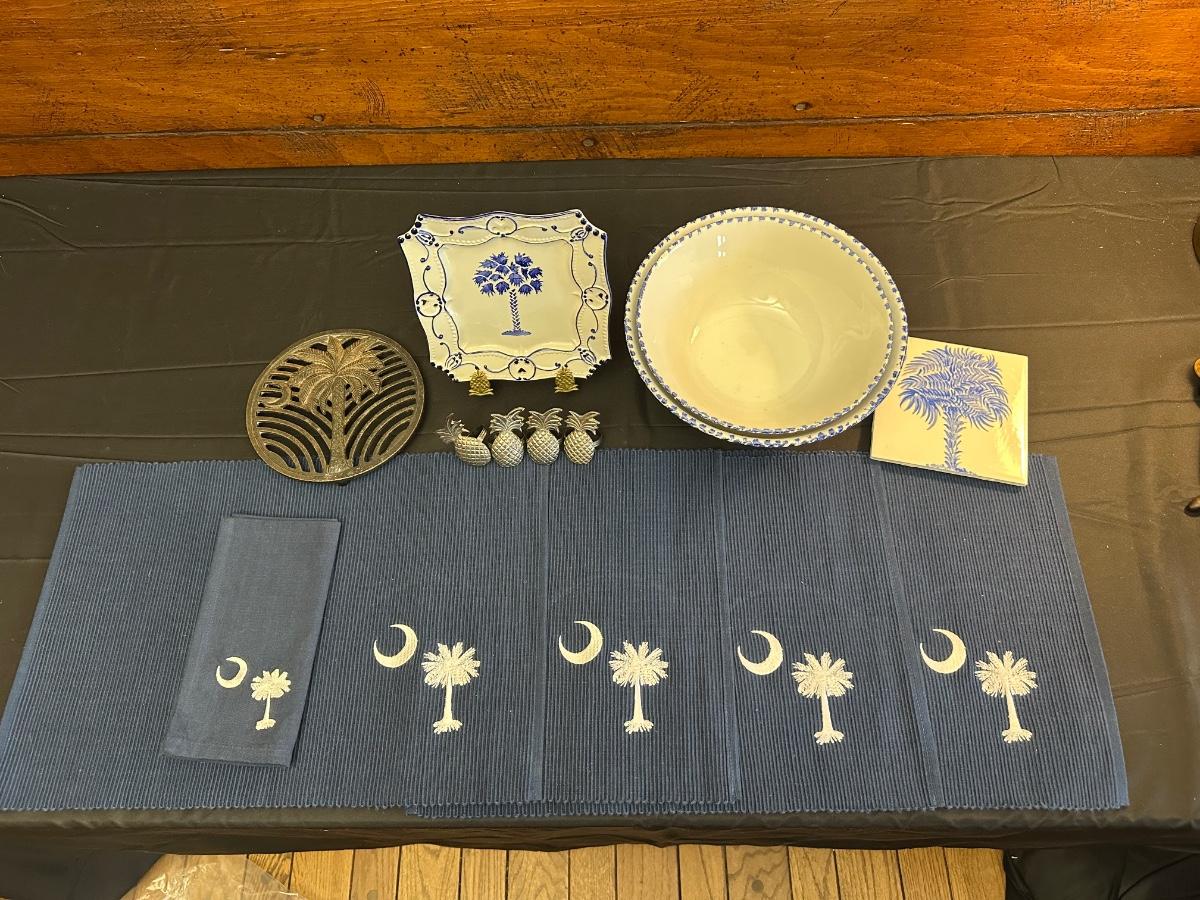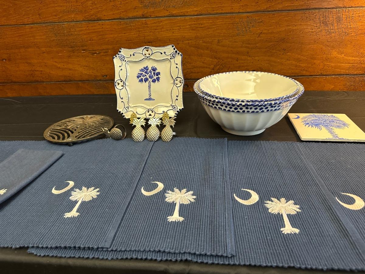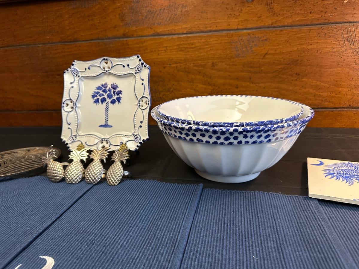 Lot Blue & White South Carolina Kitchen and Dining Items