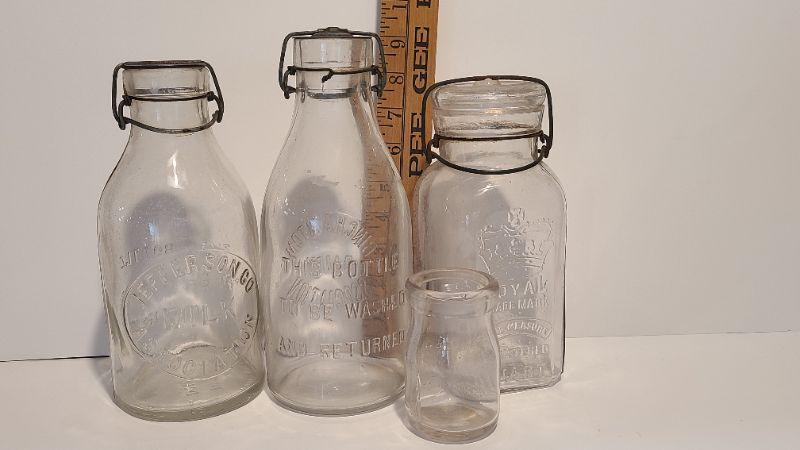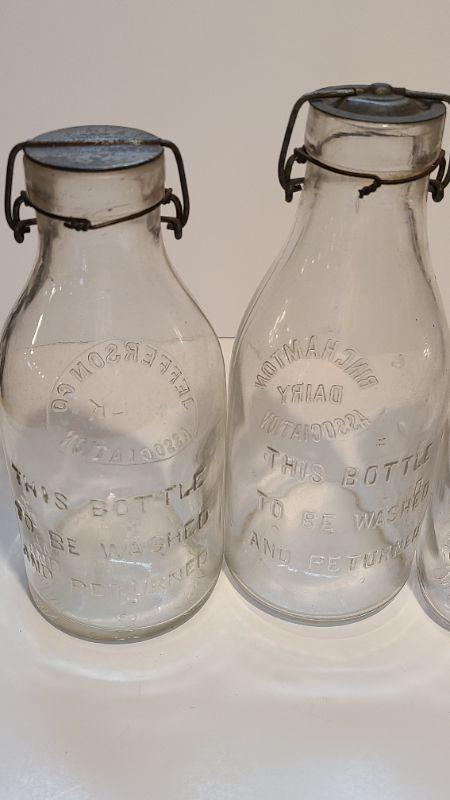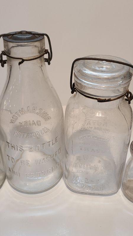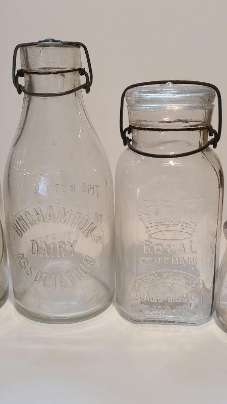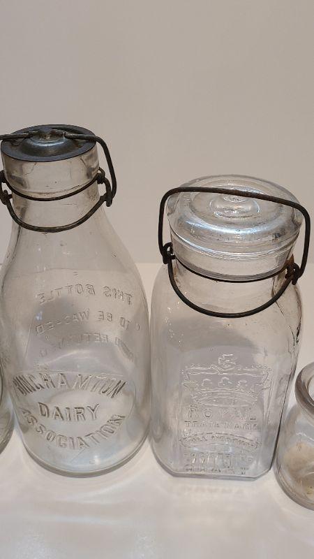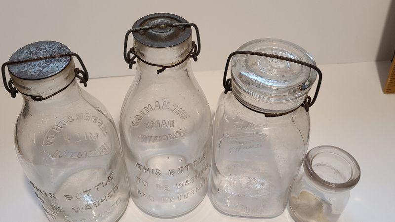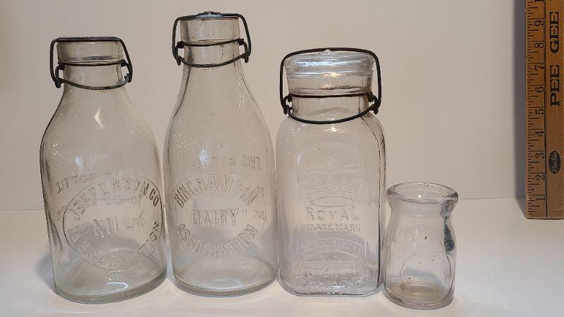 Lot 199: Unique Dairy Bottles and Mason Jar (Jefferson Co/ Binghampton Dairy)