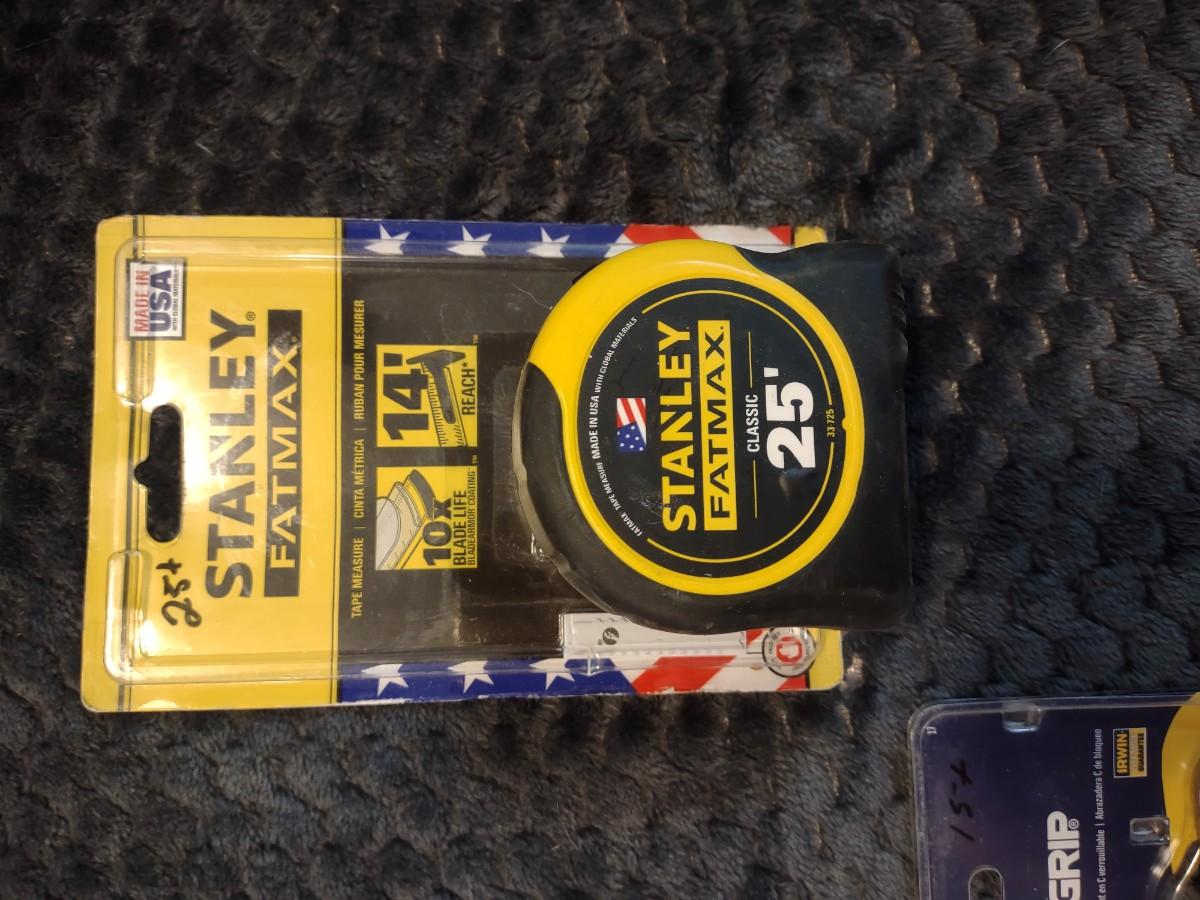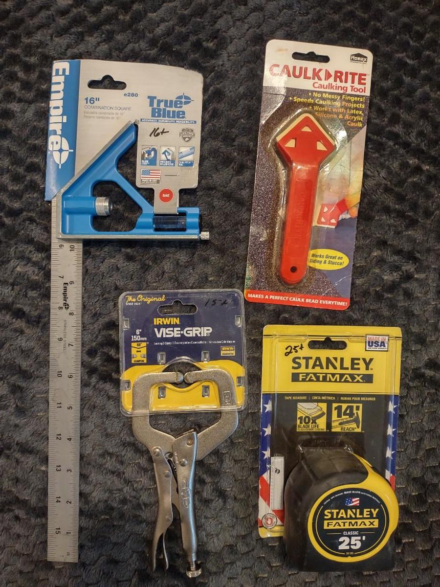 BRAND NEW HAND TOOLS. CAULK RITE CAULKING TOOL, STANLEY FATMAX 25 FOOT TAPE MEASURE, IRWIN VISE GRIP