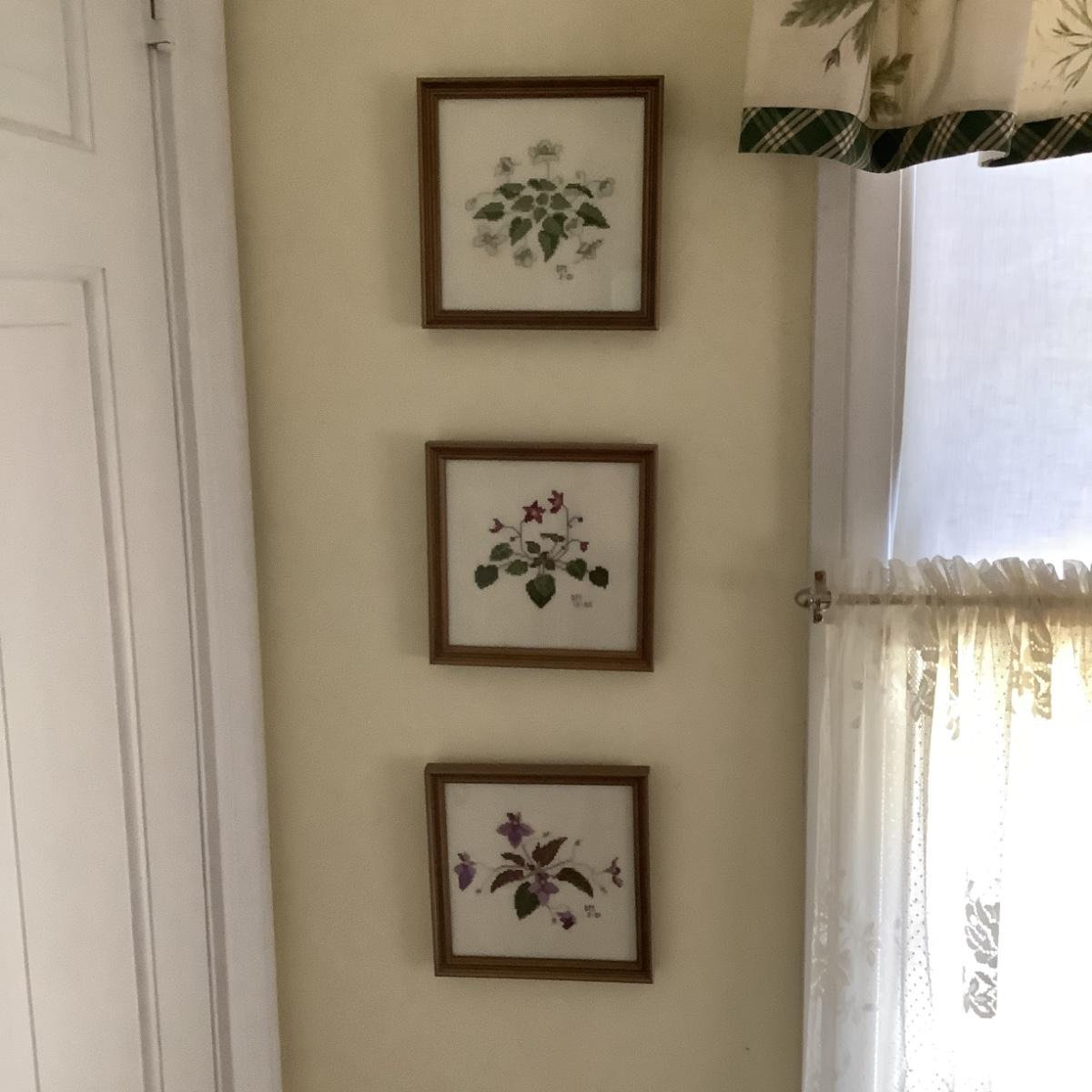 Three Hand Stitched Framed Needlepoint by D.M.