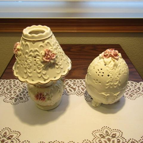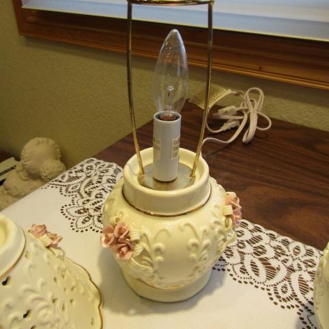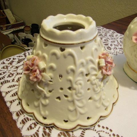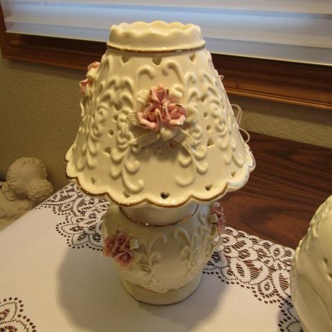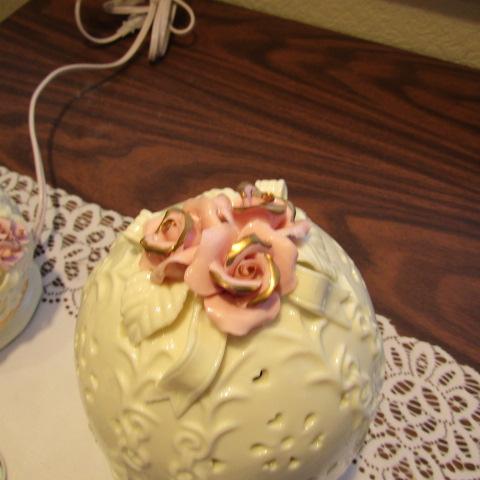 CANDLELIT CERAMIC LAMP WITH DAINTY PINK FLOWERS