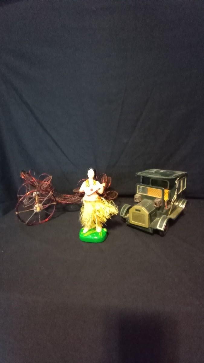 DANCING HULA GIRL- BATTERY OPERATED TIN VINTAGE CAR-WIRE CARRIAGE