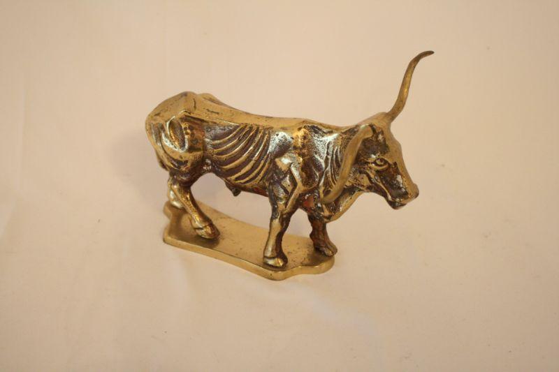 Castilian Imports 1977 Brass Longhorn Bull - This bull figurine is made of solid brass by Castilian Imports 1977. Unique decorative piece for home or office. Bull is 7" inches long.