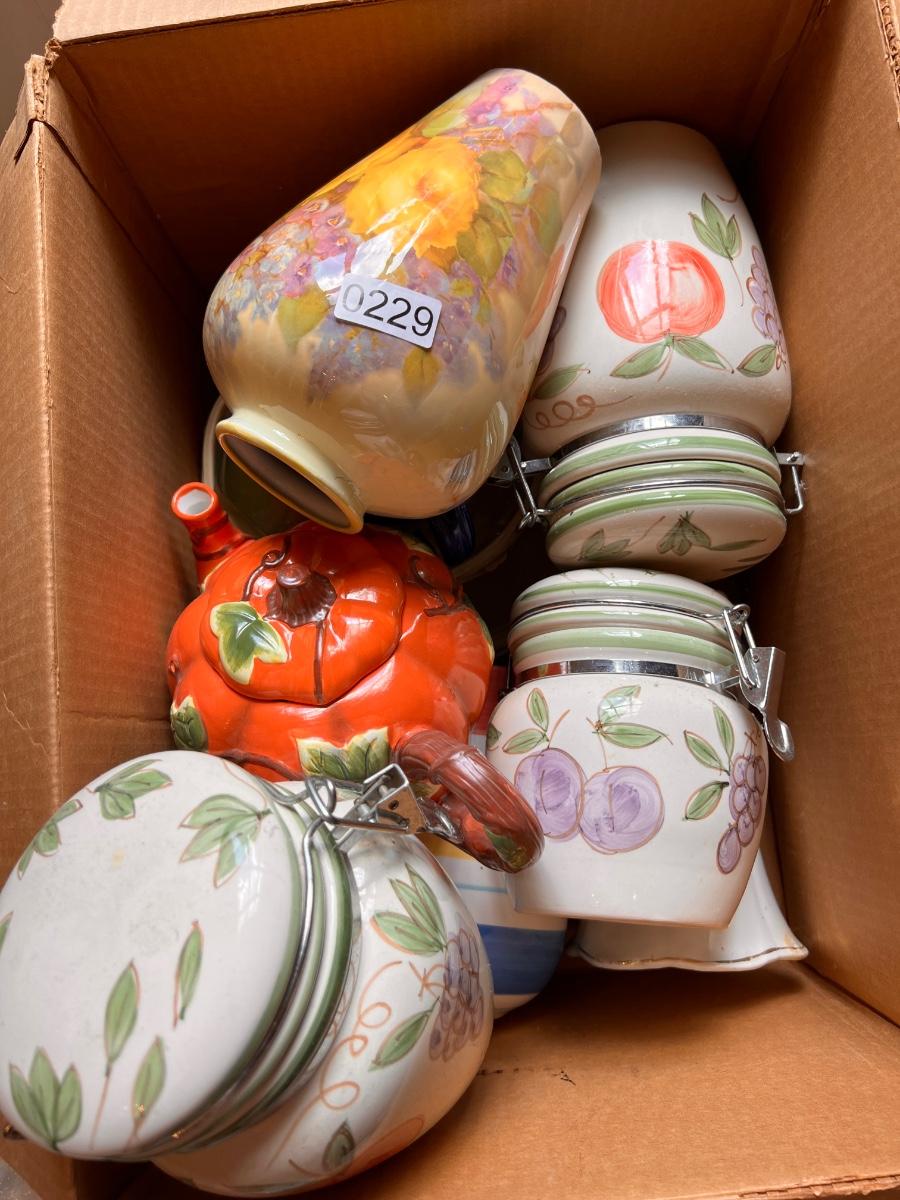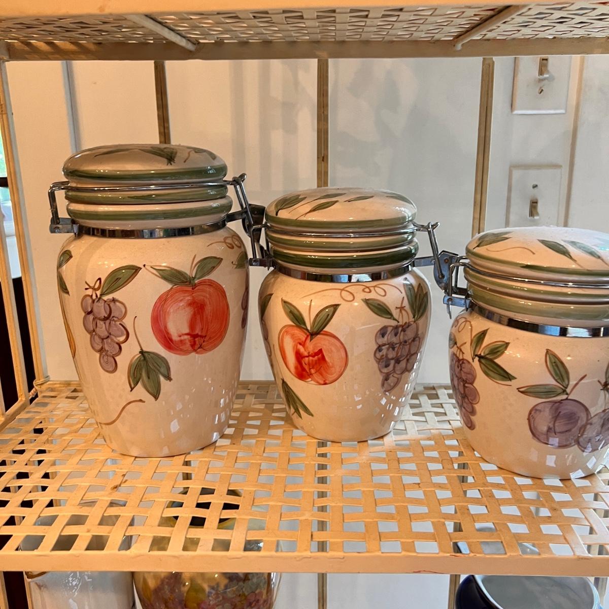 Lot of Vintage Kitchen Ceramics - Cannisters, Pitchers, Vases, Plates, etc.