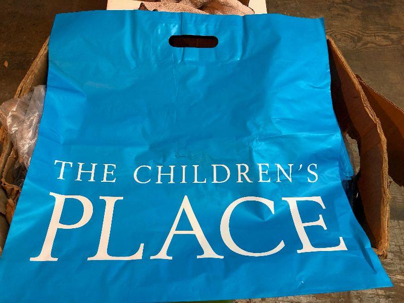 Great for the flea market dealer...a large box of new, unused plastic merchandise bags...medium size...imprinted with Children's Place Store