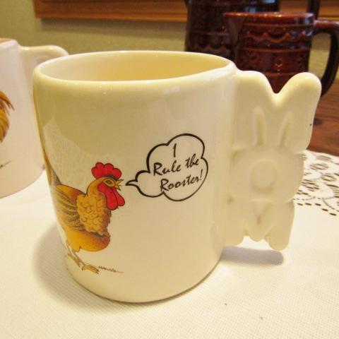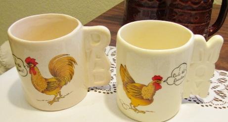 ROOSTER & HEN MUGS WITH MOM & DAD HANDLES