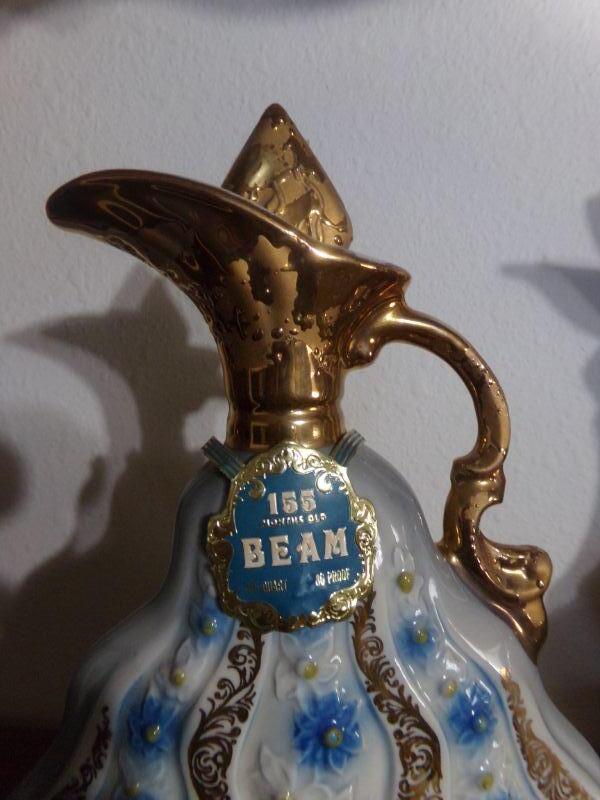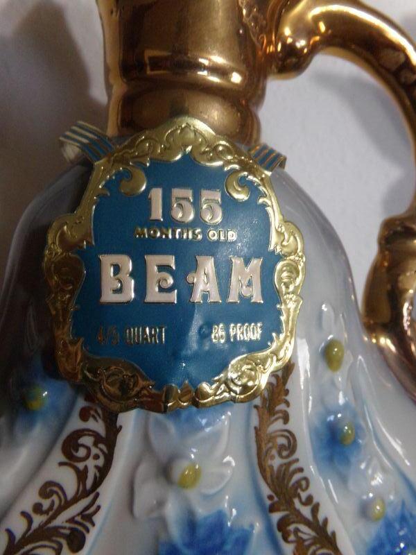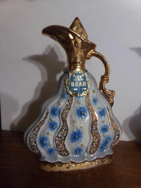 VINTAGE 1970 JIM BEAM DECANTER W/ BLUE FLOWERS & GOLD ACCENT