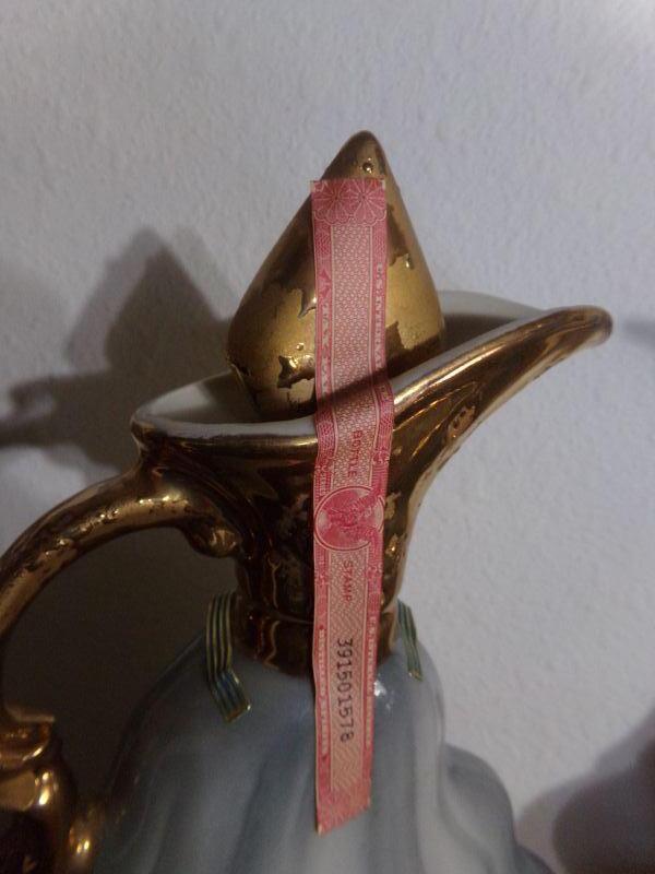 LOT 175  VINTAGE 1970 JIM BEAM DECANTER W/ BLUE FLOWERS & GOLD ACCENT