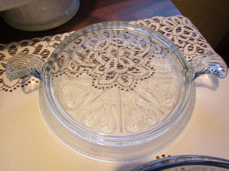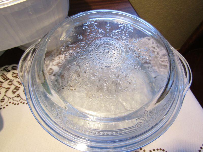 Fire King casserole with knob lid and table trivet. Blue sapphire with philbe pattern glass.