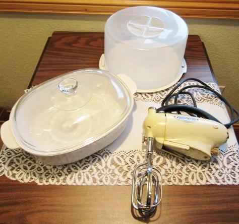 LOT 140  CORNING WARE, VINTAGE MIXER & TUPPERWARE