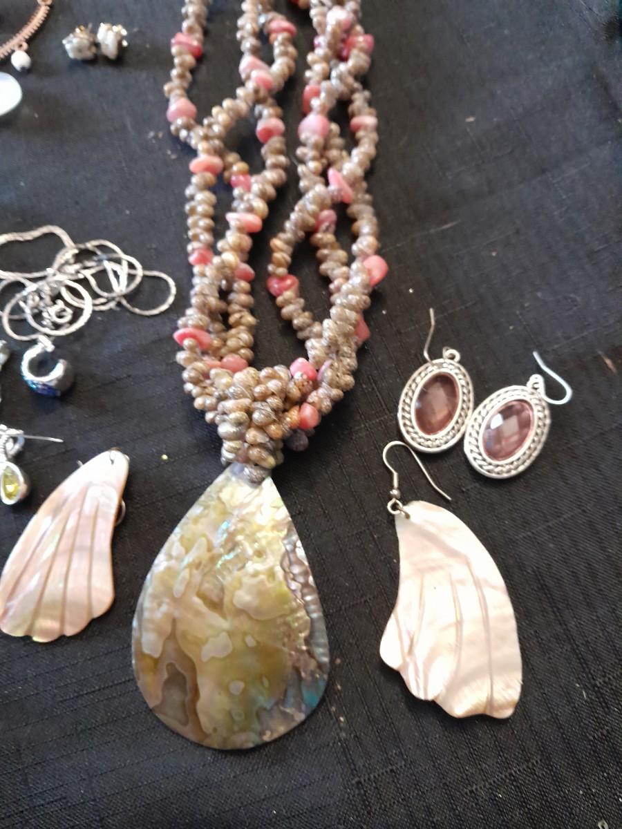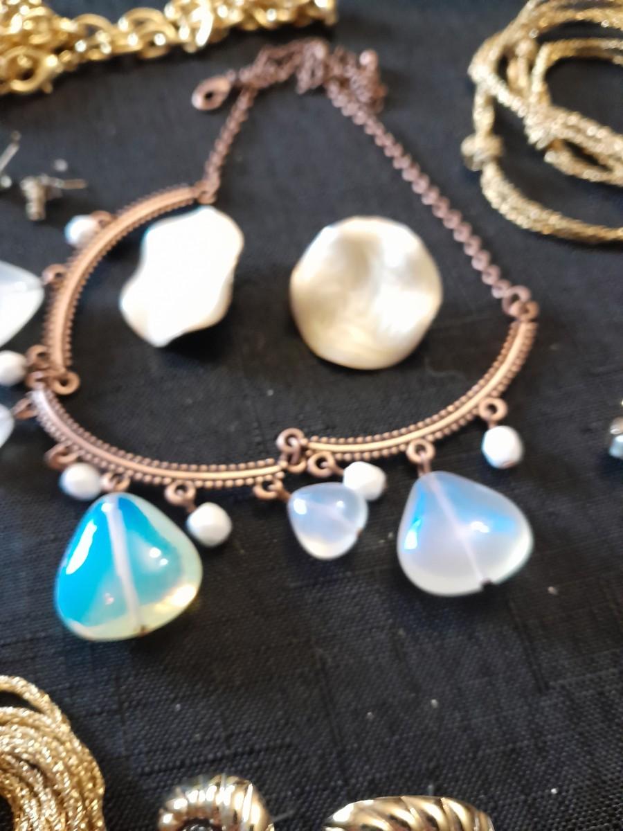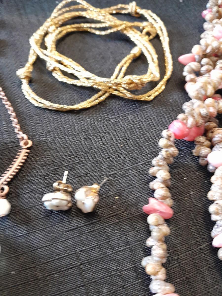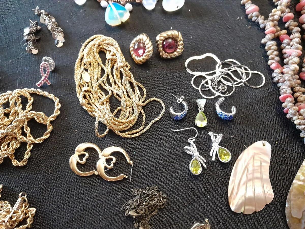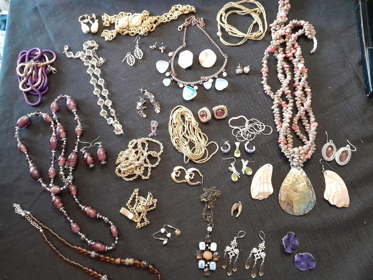 LOT 87 COSTUME JEWELRY NECKLACES WITH MATCHING EARINGS, A WATCH, AND MORE