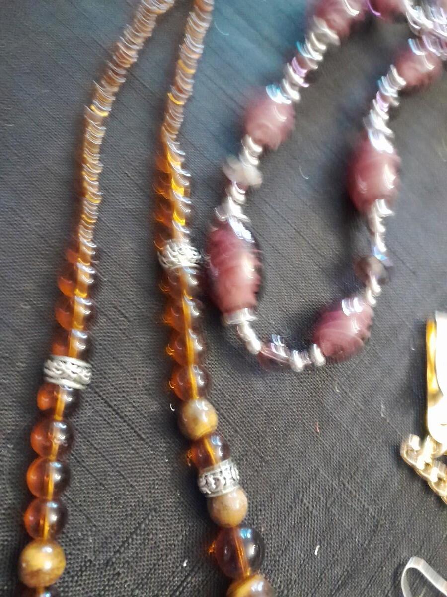 LOT 87  COSTUME JEWELRY NECKLACES WITH MATCHING EARINGS, A WATCH, AND MORE