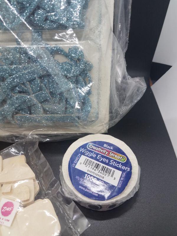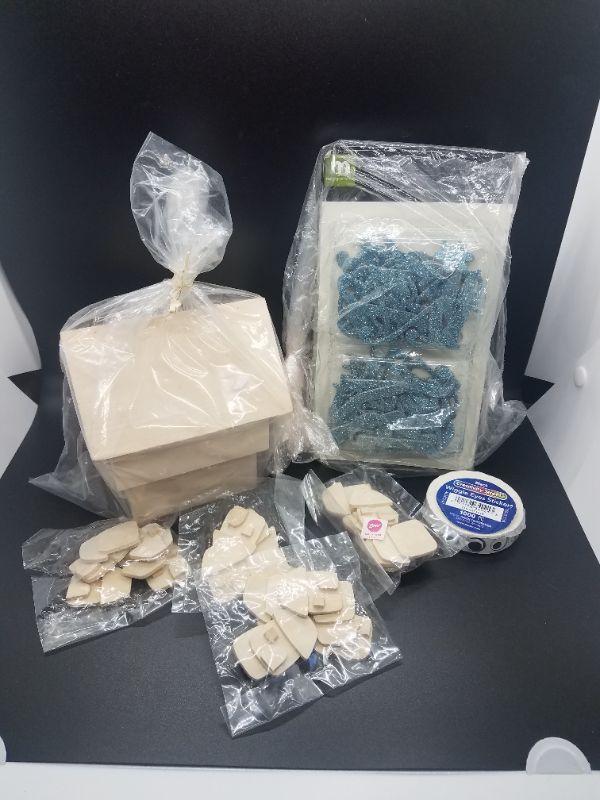 Birdhouse box, glitter letters, small wood houses, googley eye stickers!