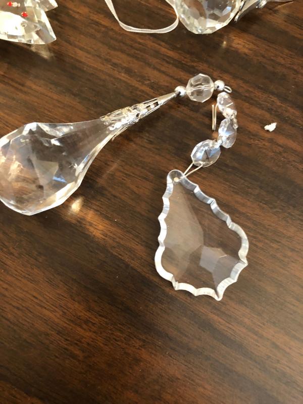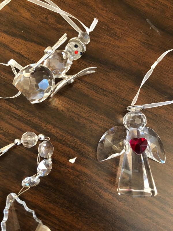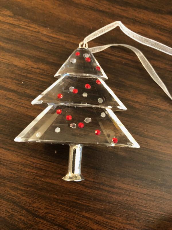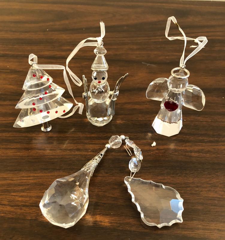here are five(5) crystal Christmas Tree ornaments...Distinctive holiday decorations...Good condition...
