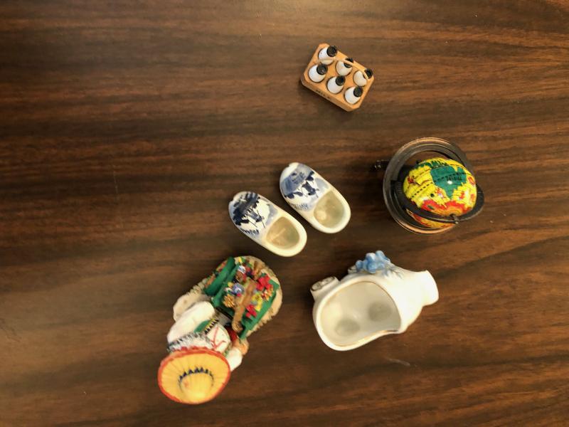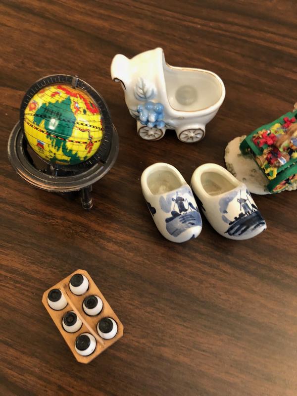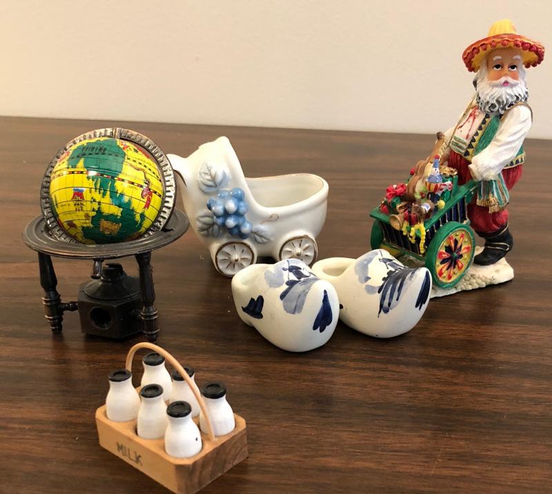 Here are a lot of five(5) charming curio shelf figurines....Good condition...