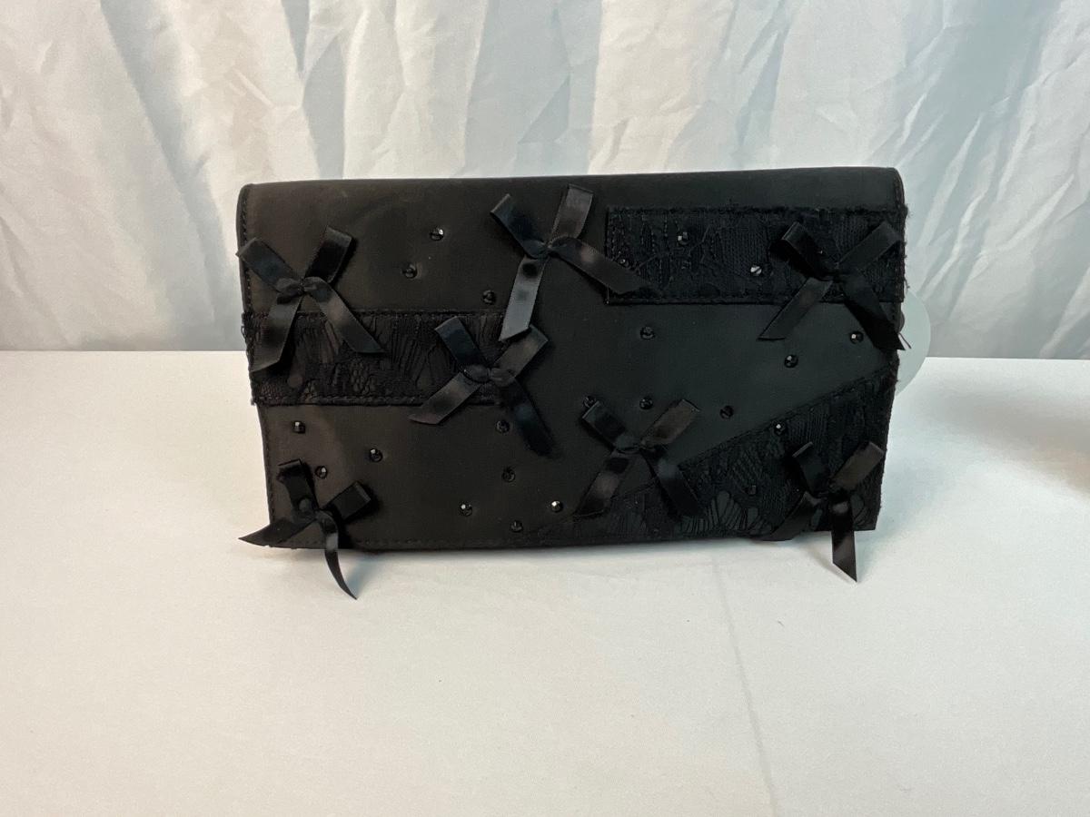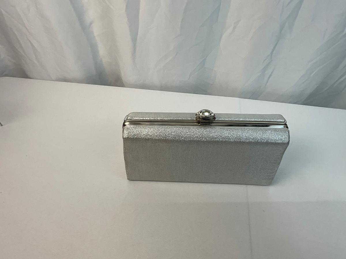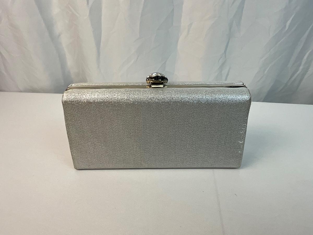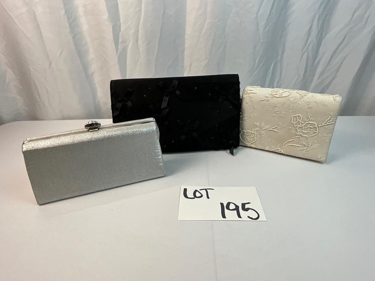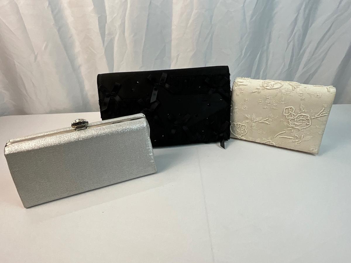 Lot of three evening clutches 1 black, 1 silver and 1 ivory.