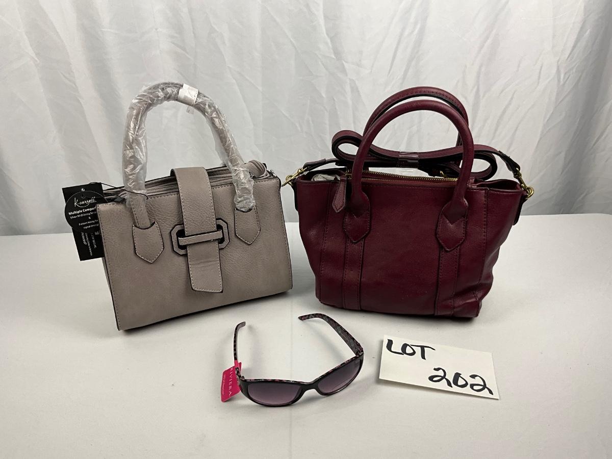 Lot D 202 NWT Two K. Farrell Leather Handbags and Riviera Sunglasses
