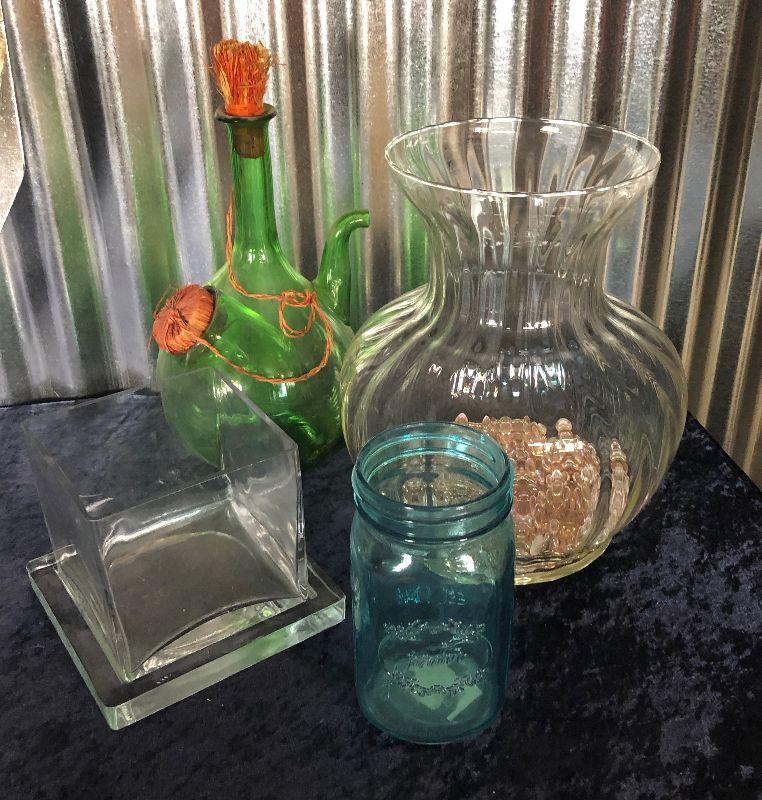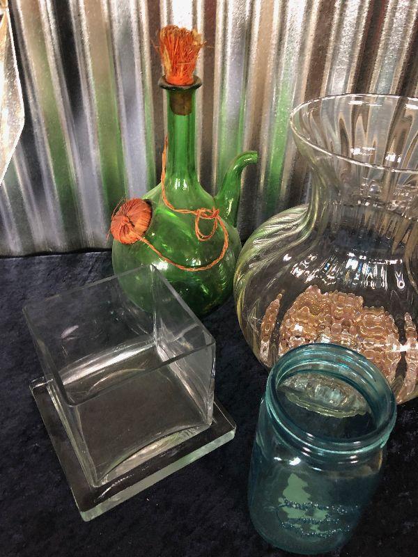 Collectible and decorative glassware in this lot...as shown...vases and decanter...