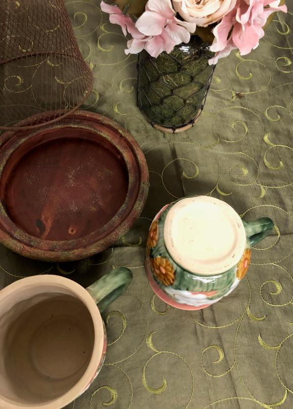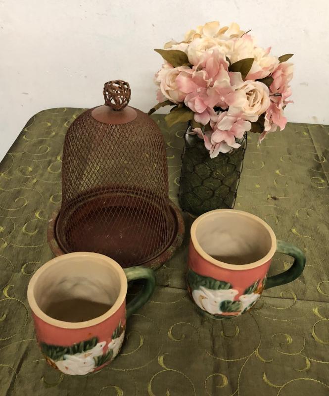Here are a pair of decorative Bunny cups..a wire flower bell and a vase...as shown..m