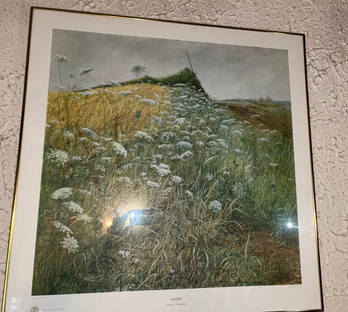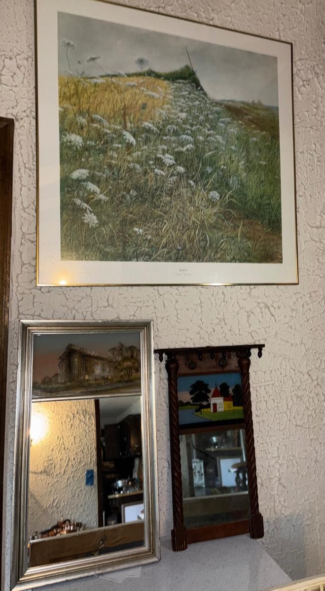 Lot Den920: 3 art pieces: Museum Print, Reverse glass painting mirror +