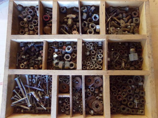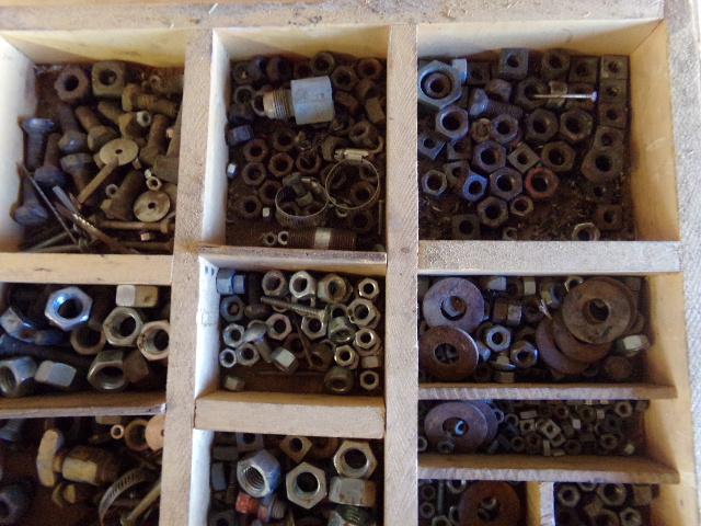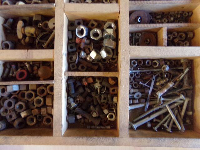 DRAWER 3 HAS A VARIETY OF BOLTS, NUTS AND WASHERS. INCLUDES WOODEN DRAWER