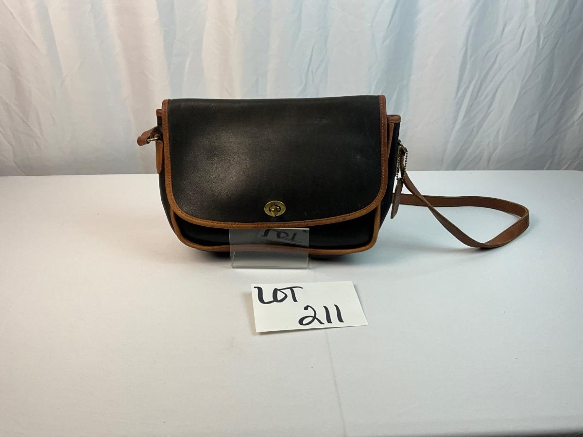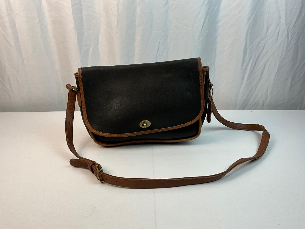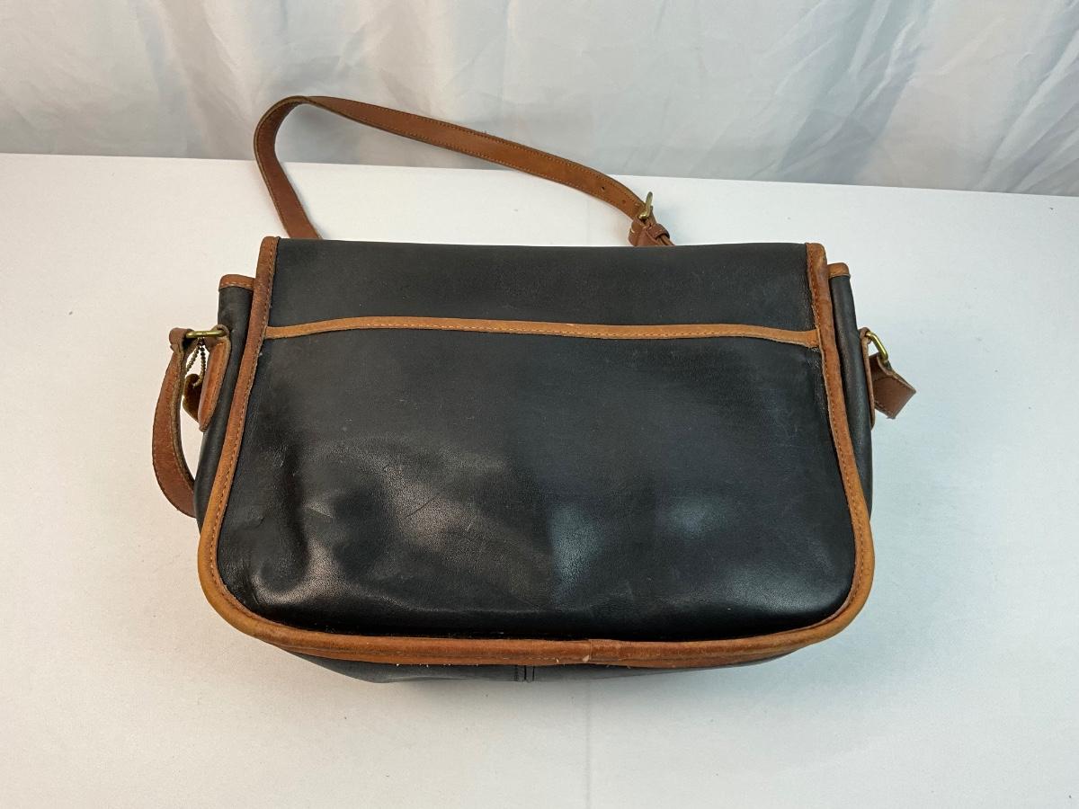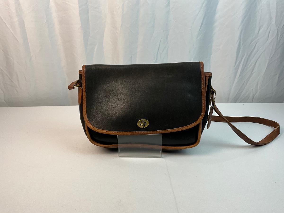 Vintage Coach leather Spectator City shoulder bag. Black and Tan. Brass turn lock closure. Has some mild signs of wear (see photos).